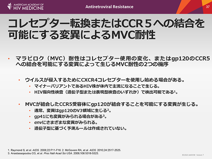 コレセプター転換またはCCR5への結合を可能にする変異によるMVC耐性